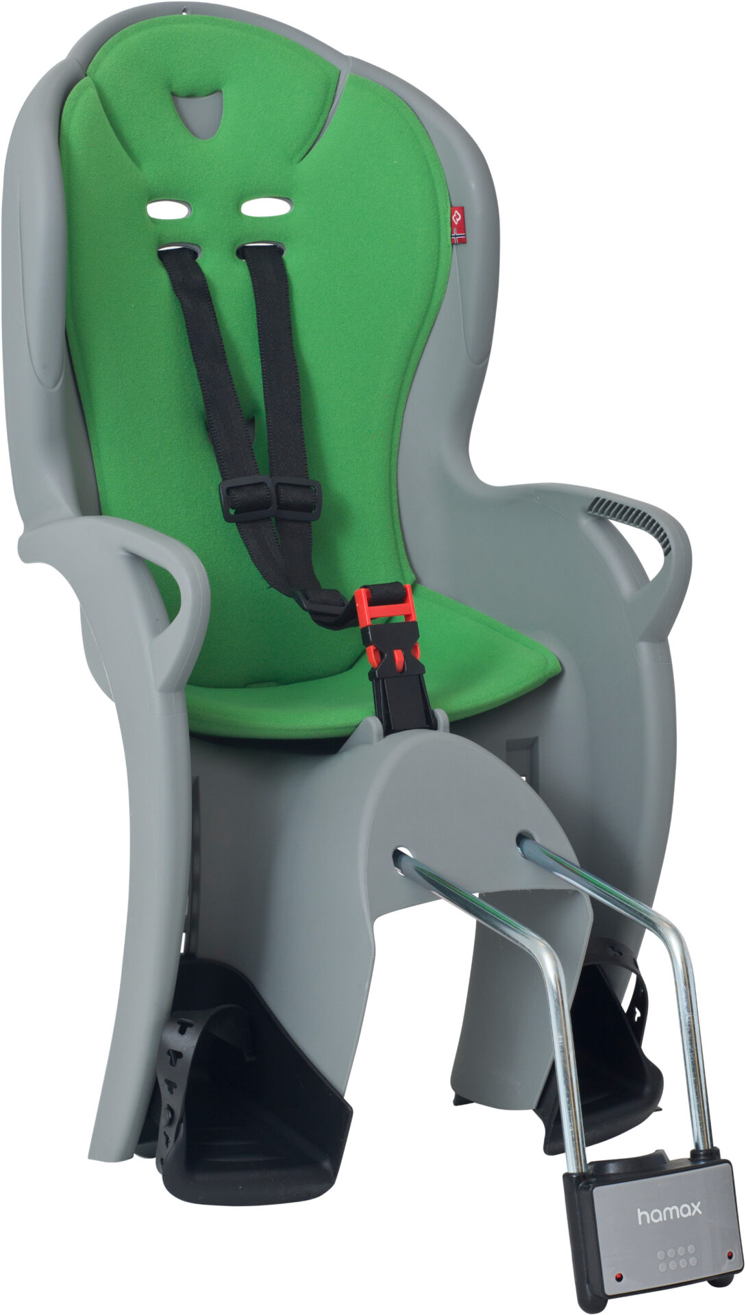 HAMAX Kiss je nejoblíbenější dětská samonosná zadní cyklosedačka od předního světového výrobce. Samonosná sedačka s uchycením za sedlovou trubku bez nutnosti použití nosiče. Byla vyvinuta tak, aby při jízdě na kole zajistila Vašemu dítěti maximální bezpečí a pohodlí. To zajišťuje především důmyslné odpružení ocelového rámu sedačky, které plně pohlcuje rázy přenášené z povrchu vozovky. Vysoké opěradlo, opěrka hlavy a perfektní celozádové polstrování bezpečně ochraňují dětskou páteř.