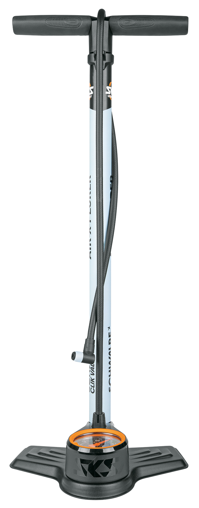Pumpa SKS AIR-X-PLORER je pumpa navržená pro snadné a efektivní huštění plášťů. Jednou z jejích klíčových vlastností je kompatibilita s ventily Schwalbe Clik Valve díky technologii CLIK TEC, která umožňuje jednoduchou konverzi pumpy na tento nový ventilový systém. Mezi další uživatelsky přívětivé funkce patří velký přesný manometr, ergonomicky tvarovaná rukojeť s měkkým úchopem a optimalizovaná hlavice „MV EASY“ MULTI VALVE, kompatibilní se všemi typy ventilů.